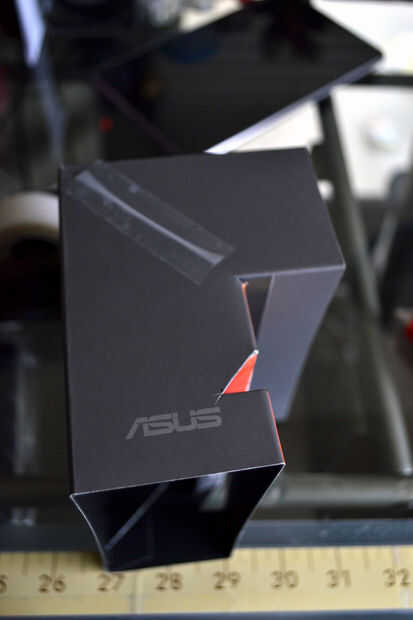 Mi hermano me envió su idea inteligente para un soporte improvisado con materiales que seguramente tienes (a menos que ya han sacudido su caja o quemó o alimentar a la cabra del animal doméstico, Charlie).