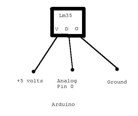 //declare variables float tempC; int tempPin = 0; void setup() { Serial.begin(9600); //opens serial port, sets data rate to 9600 bps } void loop() { tempC = analogRead(tempPin); //read the value from the sensor tempC = (5.0 * tempC * 100.0)/1024.0; //convert the analog data to temperature Serial.print((byte)tempC); //send the data to the computer delay(1000); //wait one second before sending new data } < / código >