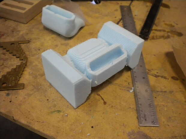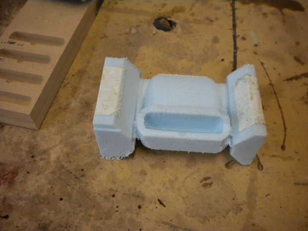 Decidí hacer estos pedazos de práctica con espuma de alta densidad. Cortes muy rápidos y fácil fijar cualquier herramienta de viaje errores. Fácil de lijar después.