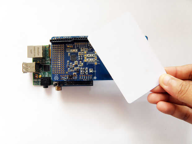 Este ejemplo muestra cómo utilizar un escudo de Adafruit NFC leer una tarjeta NFC mediante la Arduberry.