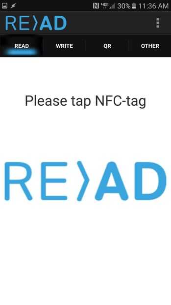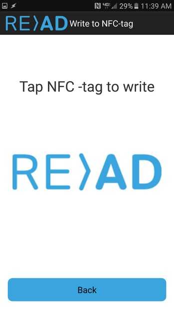 Pulse el botón write. y la etiqueta en la parte trasera del teléfono hasta que dice éxito de escritura.