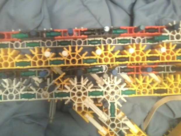 It is a though little K'nex gun that I made. Puede tirar una caña de K'nex blanco 8.5 pies (2,57 m). No es grande porque soy nuevo en instructables, pero merece la pena hacer y es bastante simple por lo que sólo toma unos muinets para construir. Perd