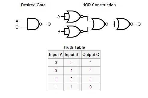 Una puerta NOR es lógicamente una invertida o puerta. Por sí misma tiene la siguiente tabla de verdad: