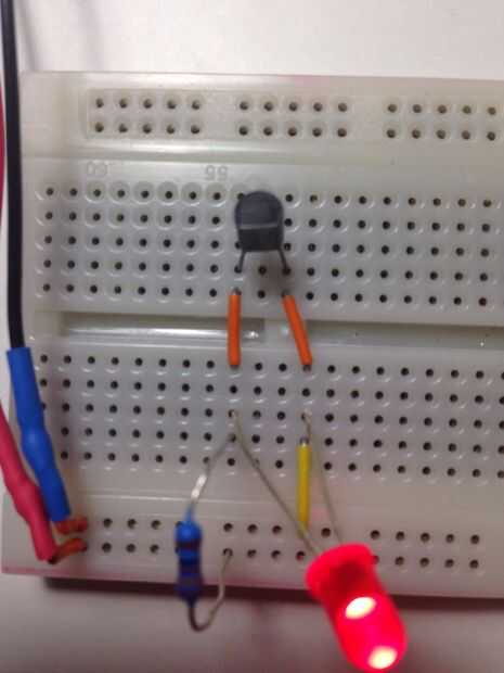 Añadir un transistor una conexión colector a + y el emisor a tierra como se muestra