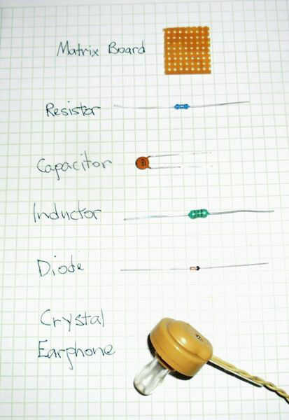 * Un auricular de radio de cristal normal está bien, pero si usted no puede conseguir uno de estos, o si la compraste va muerto (como a veces,) puede usar un sustituto, como el transductor pasivo Murata PKM44EW (ver imagen superior) o equivalente. Estos pueden compactarse de algunos viejos teléfonos pulsador. Tome la parte posterior apagado el teléfono y verás un objeto en forma de disco negro 2" redondo de 1/2 '' de espesor - con un cable rojo y negro. Desconecte los cables de la placa y desenroscar los tornillos de sujeción y retirar el transductor. cortar el enchufe mini apagado, tira con cuidado el aislamiento de los extremos de los cables y extienden por aproximadamente 18" con 2 finas longitudes de cable de conexión. Estos dispositivos pietzo hacen buenos auriculares para el conjunto de cristal y pueden ser ubicados en un viejo par de orejeras.