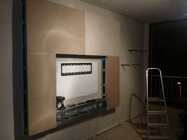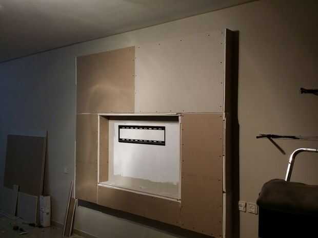 Como primer paso, seguí medir el tamaño necesario de paneles de yeso, colocado el gran tablero de yeso en el suelo, marcado el tamaño necesario y luego cortarlo con un cuchillo Stanley (cualquier cuchillo haría el trabajo).