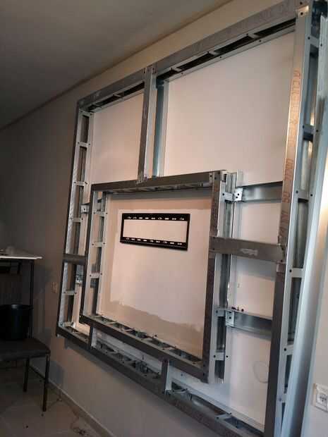 he conseguido instalar un televisor de LCD profundo de 6 pulgadas detrás de un vacío de 4 pulgadas entre la pared principal y panel de yeso. Me llevó aparte a un panel de LCD TV funcional (THOMSON modelo 42M71NH20 42 pulgadas de ancho) y colocar detr