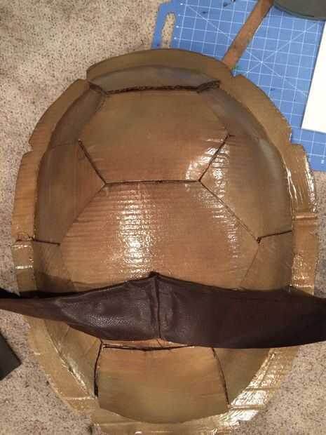 Corte tiras largas de piel artificial. Asegúrelo a la cáscara y cáscara delantera con velcro. Donny y Leo tienen fajas que van en el pecho.