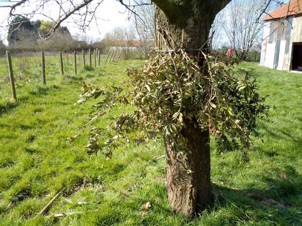 Con algunas ramas pegajosos puede hacer una barrera dolorosa que mantendrá cada depredador a distancia. Fije con una banda elástica para el árbol de la madre y empezar a admirar su trabajo.