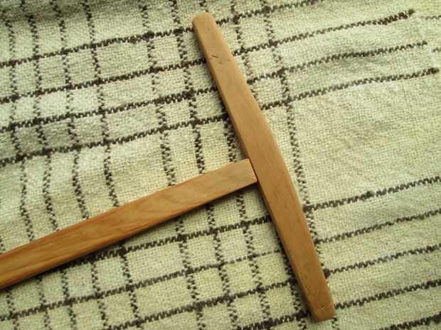 Sobre este niddy-noddy los brazos cruzados cónicos hasta extremos cuadrados. La media 40 mm (1.5") más o menos se quedaron sin afilado.