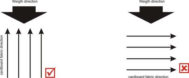La superficie que recibe la mayoría del peso debe ser dirección del contador de la cartulina tela.