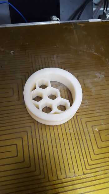 En el CAD diseñé el usable a 9/16" ancho y el diámetro a 1" 7/8 "diámetro. Ponerlo todo a la impresora 3D. 1 hora y 23 minutos más tarde lo hizo.