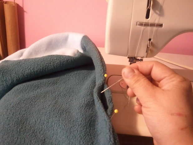 Gire cuidadosamente el tubo cerrado adentro hacia fuera. Comience con una de las esquinas y pase a través de la abertura en la costura lateral. Cuando el tubo cerrado completamente el lado derecho hacia fuera, prepararse para cerrar la costura lateral. Normalmente se utiliza una puntada de zig-zag.