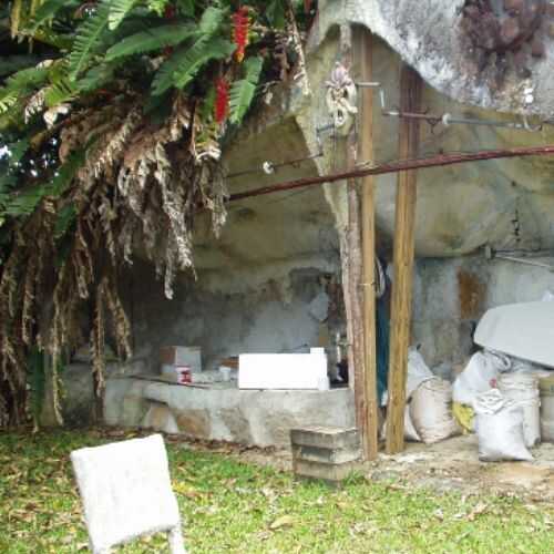 el techo de esta casa de bloque de cemento fue hecho de madera y hierro corrugado. La madera podrida hacia fuera y lo reemplacé con un techo de cemento con forma de cúpula.El techo está diseñado para ser utilizado como especie de un mini parque, así