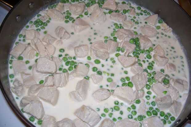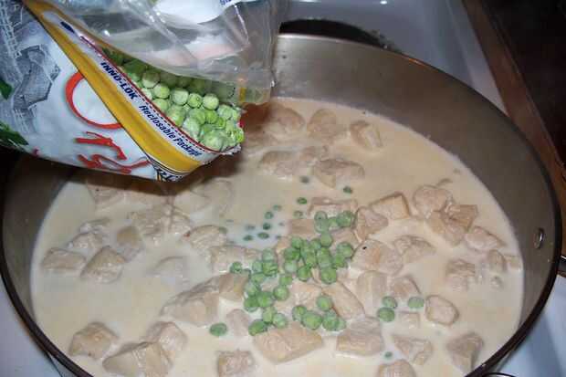 4. Cocinar hasta que los guisantes no se realizan bien, parecen mantener un poco de cocción después de que apague el quemador.