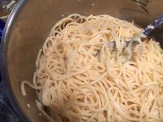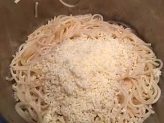 los tallarines restantes agregar el queso parmesano rallado y mezclar bien.