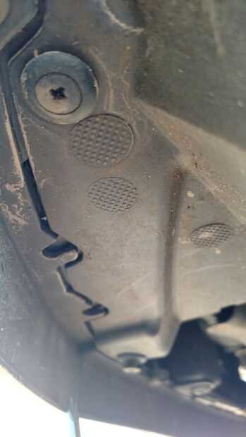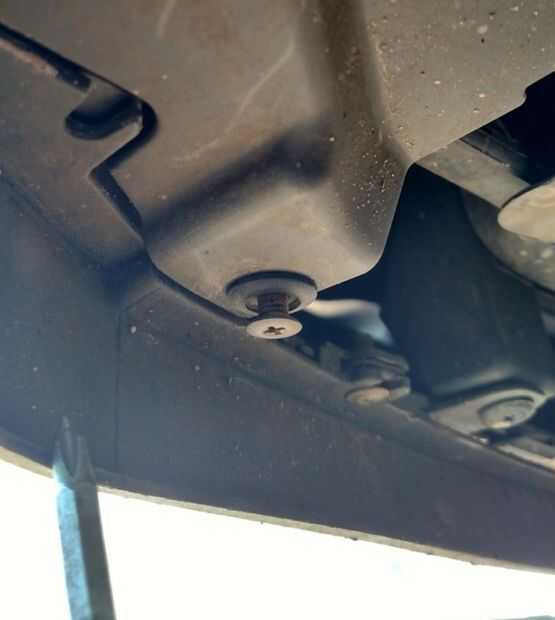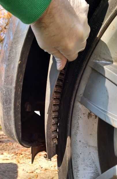 Ahora que la rueda fuera del camino, mirar debajo del coche en la parte inferior de la cubierta de la defensa.