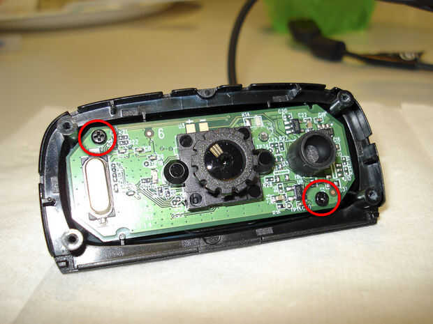 Estos 2 tornillos para quitar la placa de circuito de la caja.