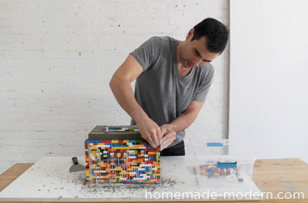 Quitar los ladrillos LEGO puede ser un poco lento. Eliminar las capas superiores y luego corte el pegamento con un cuchillo. El bloque se voltea y empezar a quitar los ladrillos de la parte inferior. Puede utilizar alicates de punta larga para quitar los ladrillos de la parte inferior, pero tenga cuidado de no rayar o doblar los ladrillos de plástico.