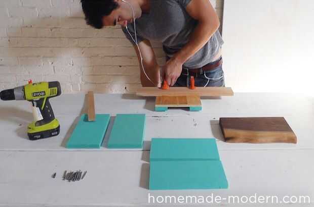 I pegado piezas de pino en la parte inferior de la madera contrachapada y atornillar las piezas laterales a la base.