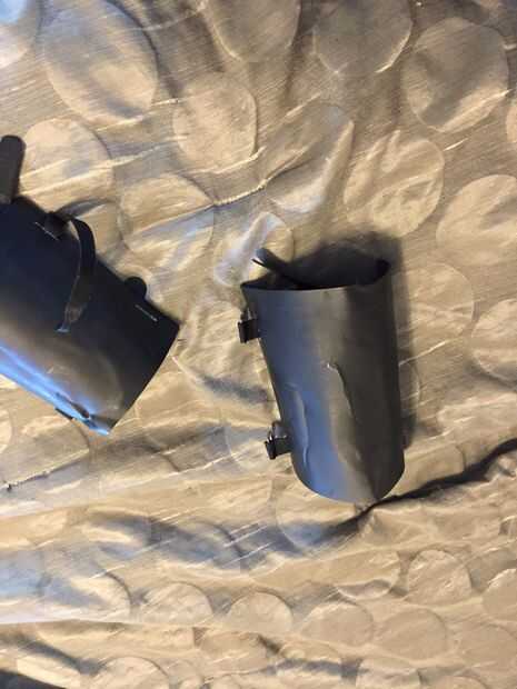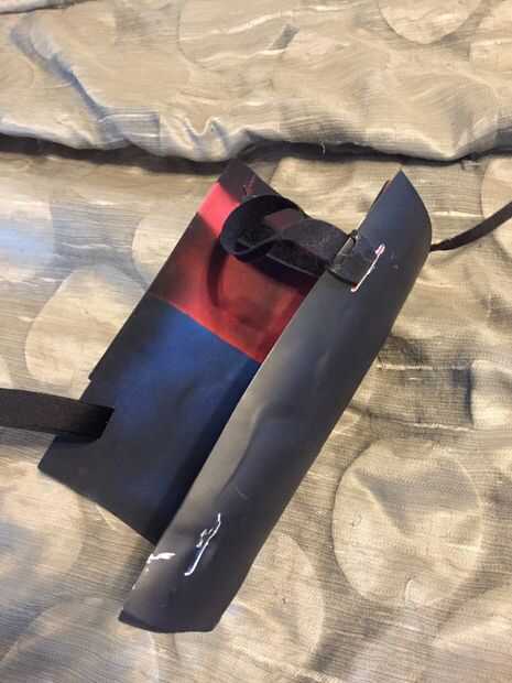 Tomé unas tiras de poliestireno y midió el muslo de mi hijo. Tenía una taza de agua del metal que era bastante gruesa. Por lo tanto, tomé mi pistola de calor y derretir el poliestireno alrededor de la taza que era de un tamaño perfecto para su armadura de la pierna. Otra vez, he formado poco de espuma en el interior y pegada con pegamento caliente. Utilicé unas tiras de Velcro que lo mantenga atado a su pierna.