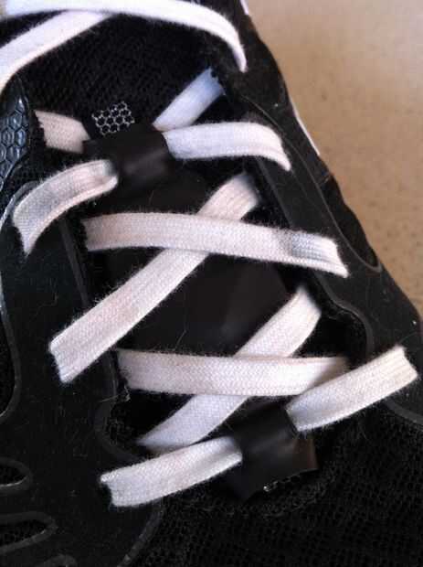 Paso final es el sensor del cordón en su zapato favorito. Mi favorito es el zapato derecho. :) Ya que mi titular y los zapatos son negros, el sensor es apenas visible. Me encanta a este soporte y no han tenido problemas qué tan nunca. También no veo el sensor en todos ya que monta encima de la lengua.