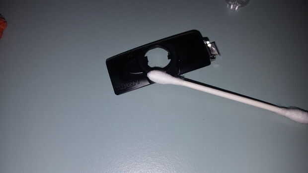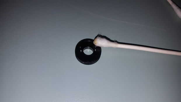 Usé el Alcohol y un hisopo para limpiar la perilla y la puerta. El cepillo de dientes también fue de ayuda.