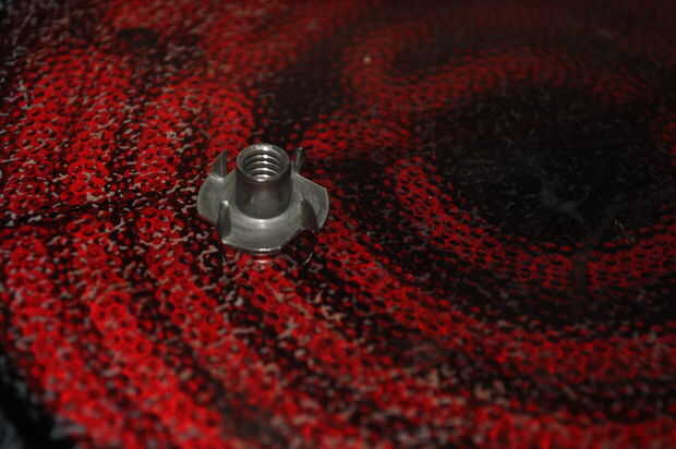 El tornillo de montaje es bastante sencillo. Tiene un par de pinzas de mano. Calentar la tuerca en la estufa. Dejarlo un par de minutos al calor. Retire la tuerca de la estufa con las pinzas y coloque sobre una superficie, preferiblemente la estufa. Presione el anillo exterior encima de la tuerca. Use presión! La tuerca derretirá su manera al ras con la parte inferior del montaje del anillo externo.