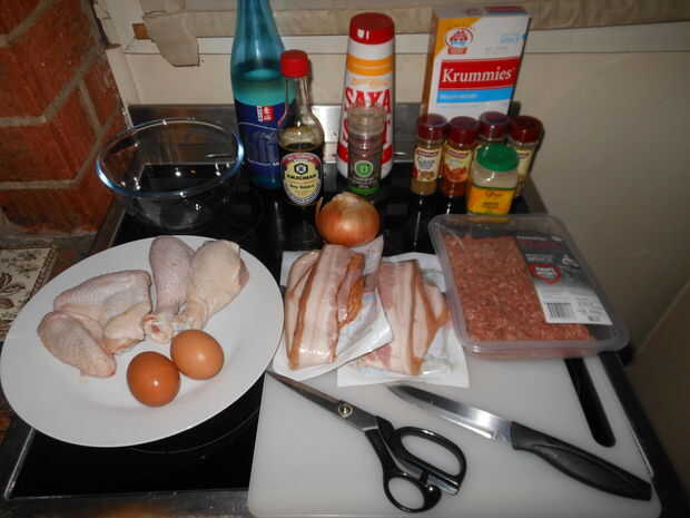 2) las alas o muslos de pollo