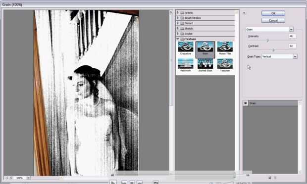 decidí añadir grano al espejo también. Utilice la herramienta pluma o cualquier otra herramienta para seleccionar el espejo. Con la capa normal y espejo seleccionado, desaturar el espejo. Ajustar el brillo y contraste para que coincida con el aspecto de la chica. A continuación, repita el proceso para añadir el efecto de granulado. (Filtro > textura > cereales > Vertical > OK) Presione Ctrl + D para deseleccionar el espejo.