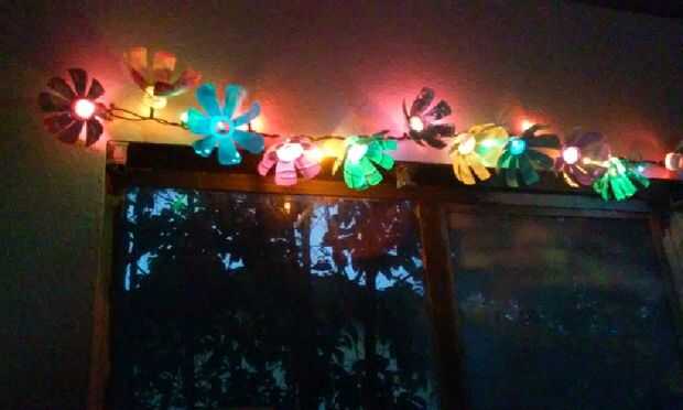 Hola en primer lugar permítame decir que soy no muy creativo pero todavía amor me gusta la idea de hogar ciclismo hasta crear artículos como cajas de cereal de botellas de plástico etc. etc. estos ex botellas de agua son para decorar la habitación de mi sobrina encantaron espero que disfrutéis haciéndolas tanto como lo hice la necesidad de suministros son una botella de agua limpia tijeras una pintura de cuchillo de artesanía y una hebra de luces de Navidad (sin ilustración) mis luces fueron comprados en la uno caja del almacén del dólar incluida 1 filamento de 20 luces por lo que tendrá que hacer 20 flores o podría hacer cada otro bulbo la elección es suya