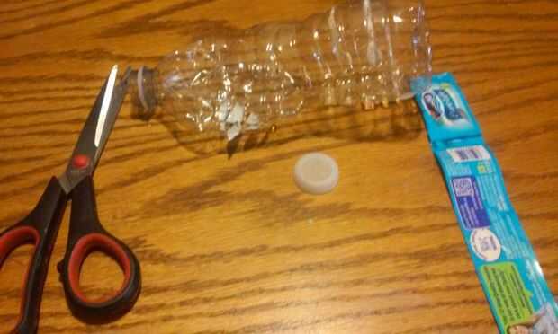 Con tus tijeras Quite el papel de la botella y cortar la parte superior