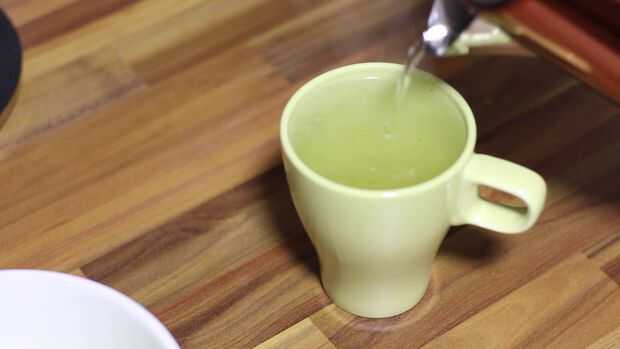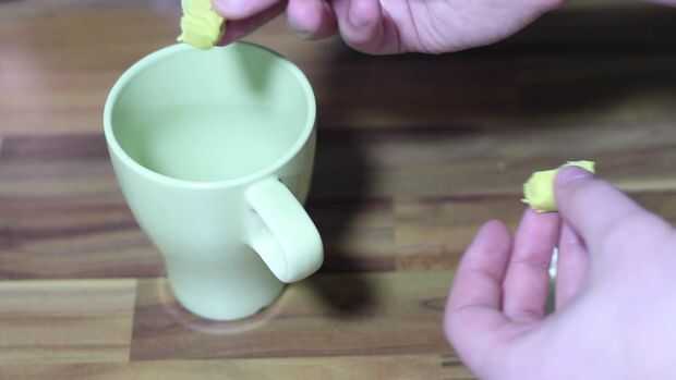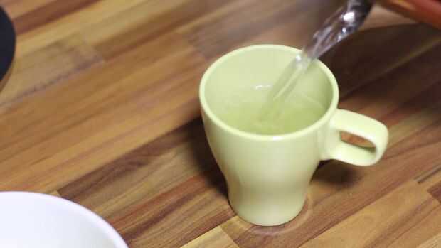 Tiro la mitad una pastilla de caldo en la taza y llenar eso taza de la parte superior con agua hirviendo de la tetera, añadir la pastilla de caldo hasta que se disuelva completamente.