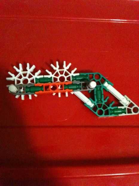 un trabajo KVG pistola sin bandas de goma.Pros:-A diferencia de otras armas, no utiliza ruberbands!-Cuenta con un clip.Contras:-Corta distancia, sólo puede disparar cerca de 2 pies.Paso 1: Paso 1 Reunir estas piezas:Conectores:6 rojo1 gris claro1 ver