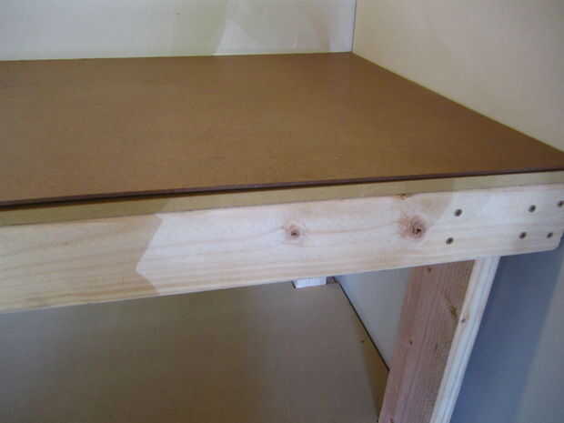 - Coloque sus piezas MDF en la parte superior y el estante (creo que usé tornillos de madera de 1 1/4)