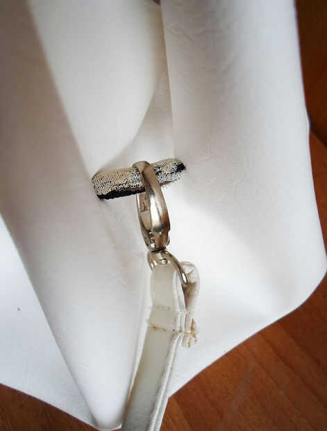 Por supuesto usted debe poner la parte posterior de su cuero en el interior de su bolso como cerrarlo.