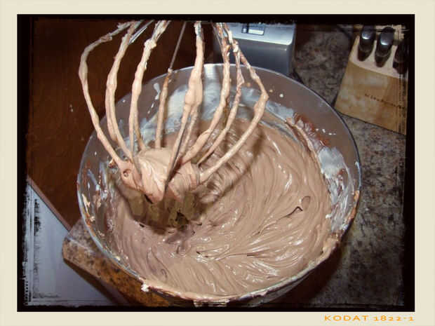 En una batidora con una batidora de alambre o en un bol con una batidora de mano, batir los dos paquetes de queso crema hasta que quede suave y raspar hacia abajo los lados con una espátula de goma. Añadir el chocolate avellana propagación y batir algún tiempo más, bueno para raspar hacia abajo los lados otra vez. A continuación, agregue una taza de heavy y batirlo una última vez hasta que se incorporen bien. ¿No es necesario añadir azúcar a esta receta, osea has probado chocolate avellana propagación? Dientes lastima dulce!!!!!! Es bueno que el queso crema embota la dulzura suficiente.