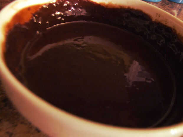 Mientras que usted espera y sollozar a sí mismo pueden distraer sus dolores de hambre con más chocolate... Que no puede comer todavía. Con sus trocitos de chocolate en un tazón de fuente espera, agregue 1 taza de crema de leche en una cacerola pequeña y llevar a ebullición lentamente a fuego medio mientras batir con un batidor de alambre, para no quemar la crema. En cuanto la crema se hierve el pobre lo sobre los chips de chocolate y bate hasta que vea una forma de buena salsa de chocolate y que no queden grumos. Dejar enfriar durante 10-15 minutos.