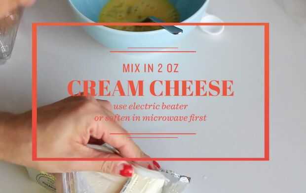 Mezclar el queso crema con el huevo. Puede utilizar una batidora eléctrica para obtener la consistencia suave o ablandar el queso crema ligeramente en el microondas.