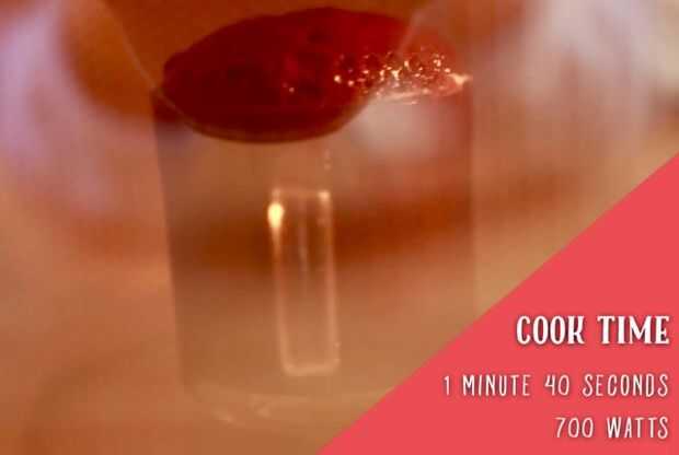 Coloque la mezcla en el microondas durante 1 minuto y 40 segundos a 700 vatios. Mantenga un ojo atento en su mezcla, teniendo cuidado de que no queme. Cuando la parte superior se ve seco, se acaba el brownie.