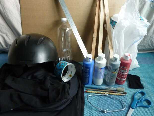 ~ fuerte negro hilo y aguja o grapadora. Se trata de cómo está sujetando a la tela a la máscara. Si utiliza grapas, lo más fácil pero deja agujeros más grandes en la tela y la cartulina máscara.