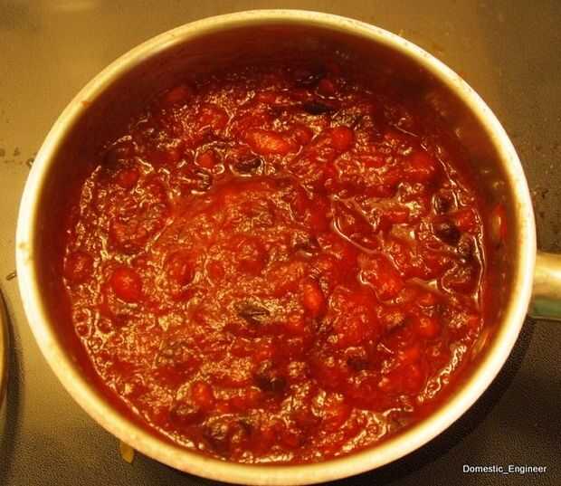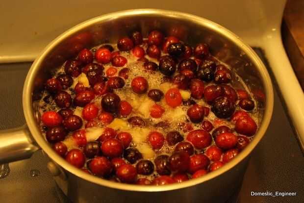 Poner las manzanas en una cacerola, con un chorrito de agua. Cocine hasta que puede ser puré. Puré en la olla, luego agregue los arándanos, el azúcar y el agua si es necesario. Cocinar a fuego lento durante unos 10 minutos, hasta que todas las bayas "pop". Puré para arriba un poco con la trituradora y deje que se siente. Obtiene un poco más gruesa mientras que se refresca.