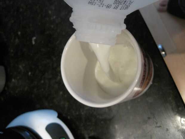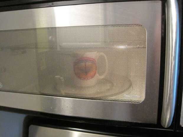 El primer paso para hacer el moka es Sírvete aproximadamente una porción de leche según el envase para el chocolate caliente. Una vez que usted tiene en su taza, poner en el microondas durante 45 segundos a un minuto. Cuando se toma la leche que debe ser caliente pero no hirviendo.