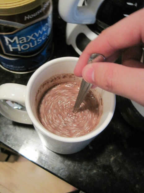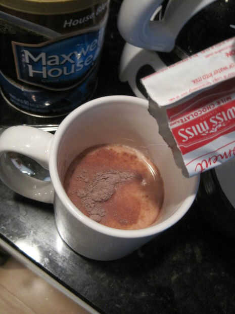 Una vez que la leche está caliente, puede Agregar la mezcla de chocolate caliente instantánea a él. Agregue hasta que el polvo se disuelva.