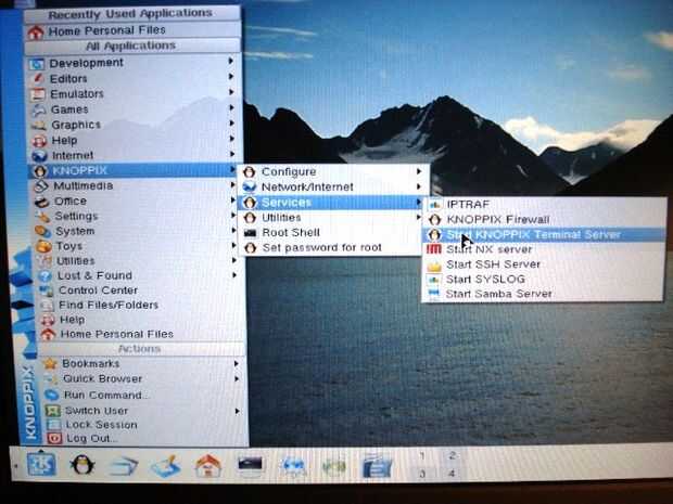 - Una vez completamente arrancar KNOPPIX elige iniciar el KNOPPIX terminal Server