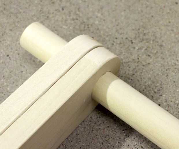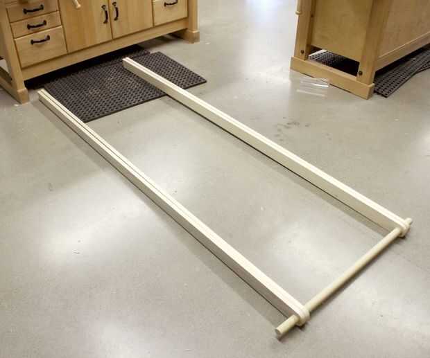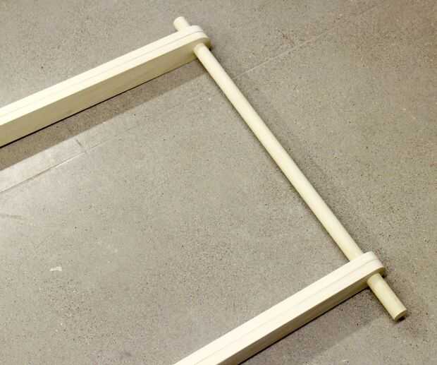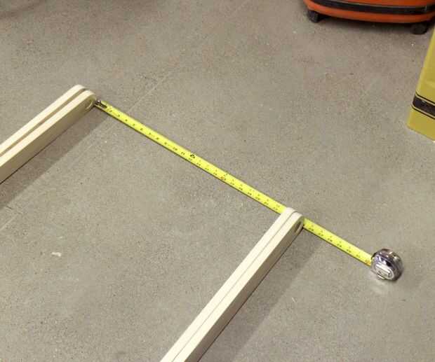 Deslice el pasador a través de los orificios en la parte superior de los postes como muestra la imagen. Debe haber 23 5/8" entre la parte superior de los dos dentro de montantes.