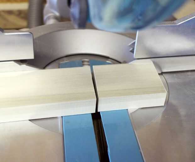 A partir de uno de lo corte de ángulo, mida 4" y corte un corte paralelo 6 grados (como en la foto superior). Cortar 4 de estos.