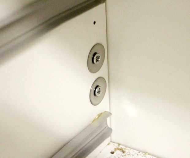 También debido a la fuerza necesaria para atornillar firmemente los materiales juntos, es importante utilizar las arandelas para que los tornillos no perfore el material del gabinete.