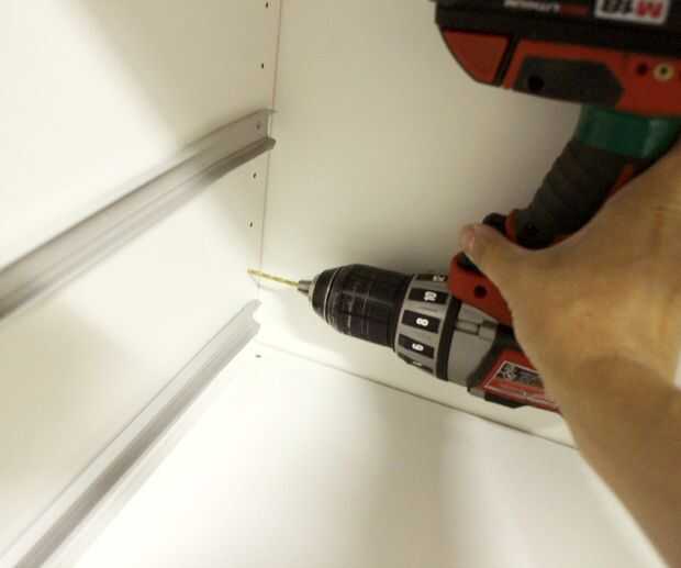 En orden para la cuña a no hacer, vamos a poner dos tornillos, utilizando los dos primeros agujeros existentes por encima de la diapositiva del cajón (como en la imagen).
