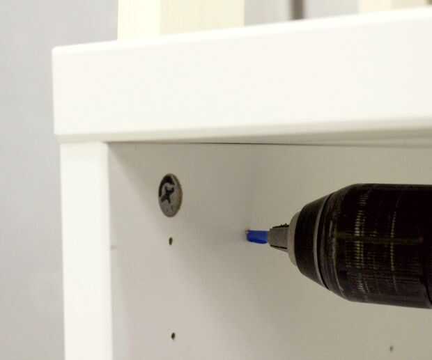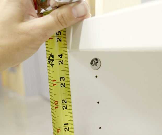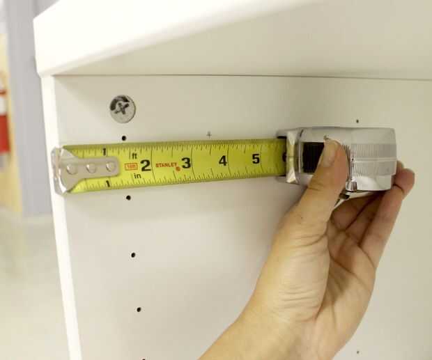 Medir esa misma distancia en el interior del gabinete, haciendo coincidir la cinta con el agujero superior existente para una referencia de altura. Marque su taladro punto con un lápiz.